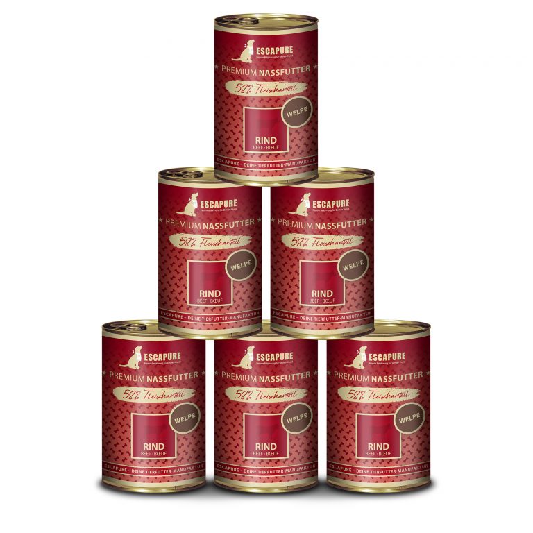 Unser Escapure Welpenfutter sorgt durch eine maßgeschneiderte Rezeptur unter Verwendung von frischem Muskelfleisch und "guten Innereien" für eine ausgewogene Ernährung während des Wachstums.