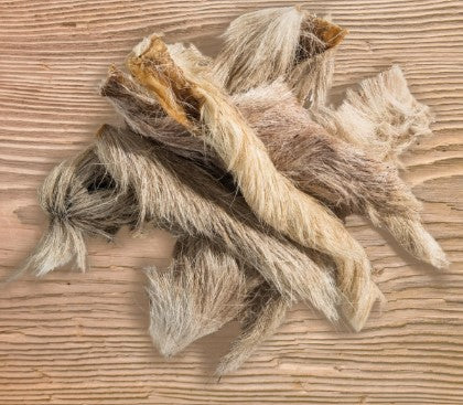 Canis Plus Ziegenfellstreifen sind für sensitive Hunde das gute Stück echtes Naturkauglück, so dass auch Allergiker leicht verträgliche Beute machen können. Denn eigentlich gehört zur kompletten, naturgemässen Hundemahlzeit ja auch das Fell dazu, das quasi als „Jacke“ des Tieres den Darm putzt und richtig tolle tiertypische Geschmacksstoffe enthält, die sonst in keinem Fleisch stecken. Auch als wertvoller Ballaststoff sind Ziegenfellstreifen neben der Fleischfütterung unabdingbar.